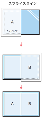 <!>ガラスサイズがフィルム幅より広い場合は、フィルムのつなぎ合わせ(スプライス)を行います。