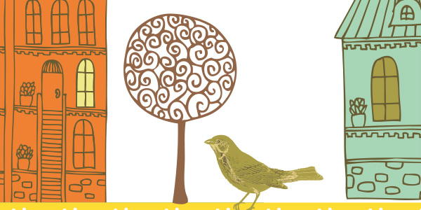 おうちと鳥のイラストがキュートなデザイン。